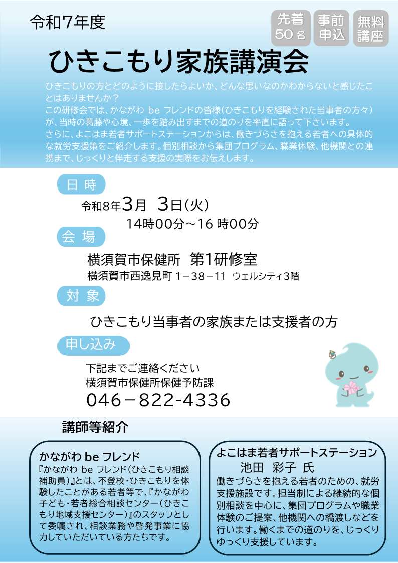R8年3月3日にひきこもり家族講演会を開催します。